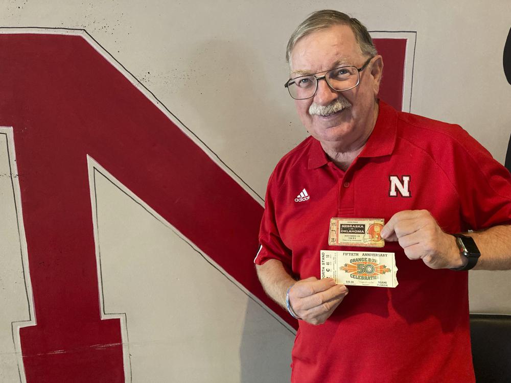 At the bottom of the box, detached from the page they were once glued to, were ticket stubs from Nebraska’s 1971 “Game of the Century” win against Oklahoma and the Cornhuskers’ 1984 Orange Bowl loss to Miami.